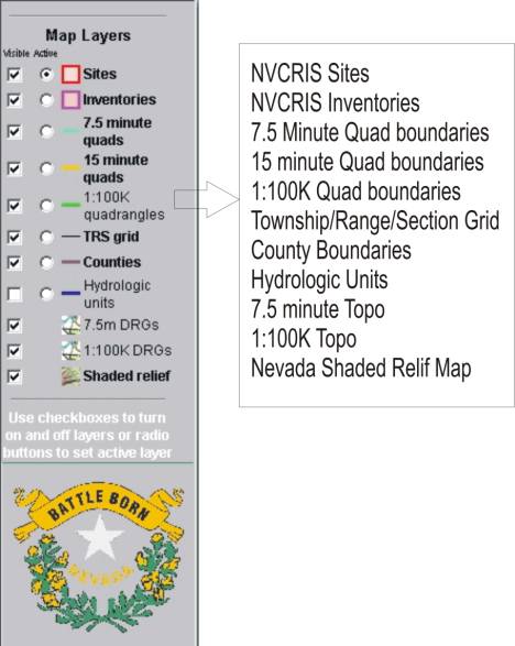 Use checkboxes and radio buttons to make Map Layers Visible or Active.